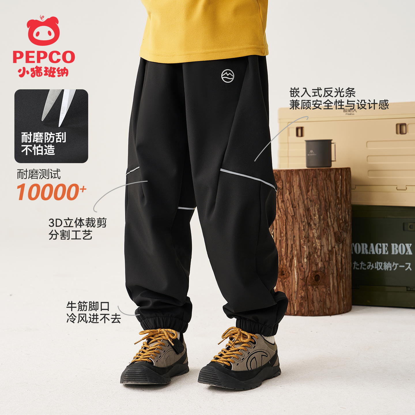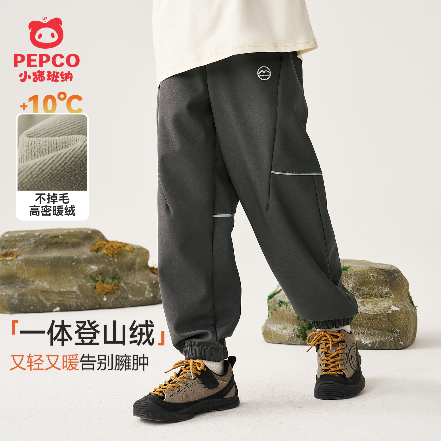 中大童保暖一体绒加厚裤 儿童休闲裤 运动裤 小猪班纳男童冲锋户外裤