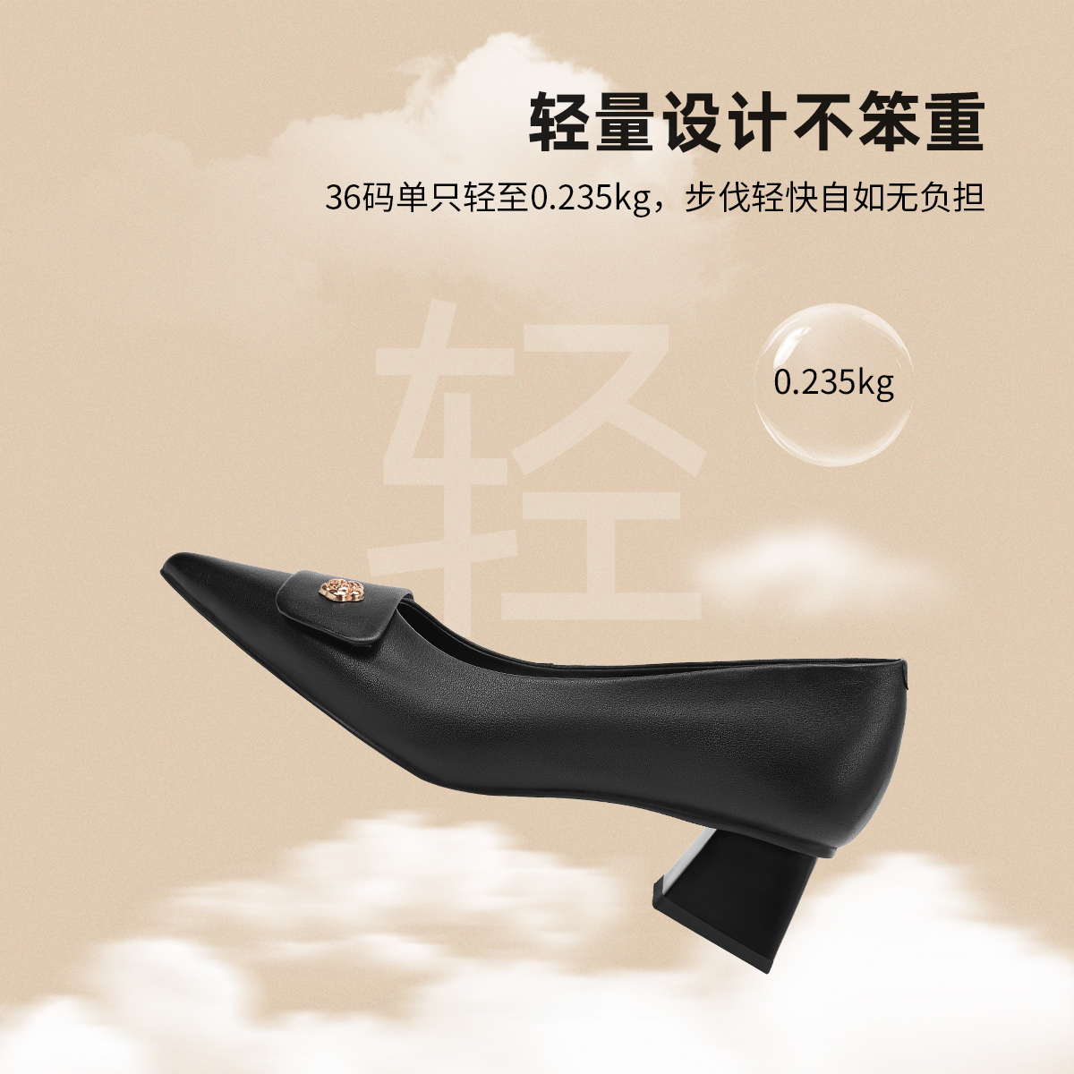 单鞋 羊皮浅口法式 千百度粗高跟鞋 异形跟职业通勤大码 静音系列