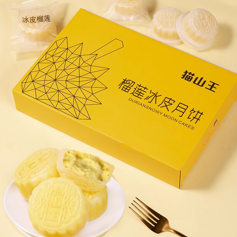 荔枝味水晶皮月饼礼盒装 榴莲味冰皮月饼中秋送礼品零食 2025新款