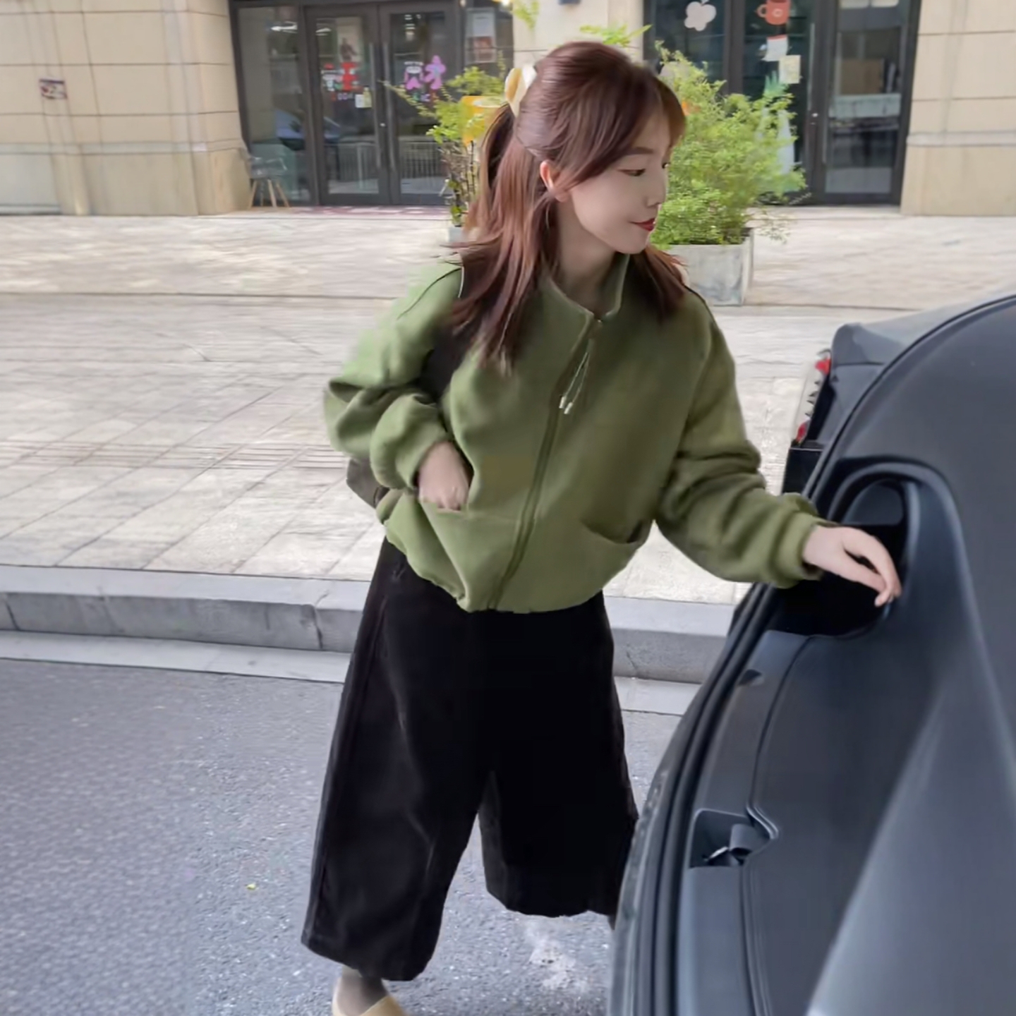 时尚 2025年秋季 洋气休闲夹克上衣潮 立领设计感卫衣短外套女装 爆款