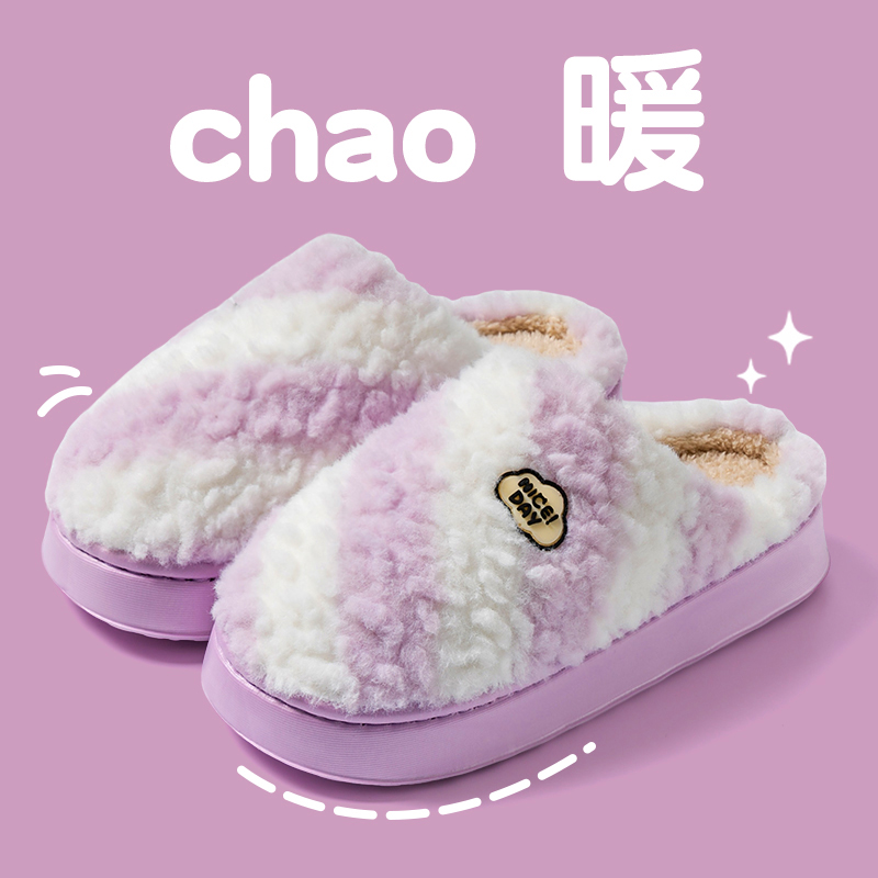 情侣保暖可爱男士 毛绒棉拖鞋 室内家居厚底防滑2025新款 秋冬季 女款
