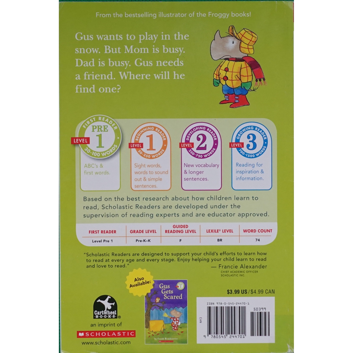 学乐分级阅读原版 主题亲子共读学龄前儿童启蒙读物弗兰克雷姆凯维奇作品 书Gus英语绘本古斯交朋友适读36岁温暖友谊故事冬季