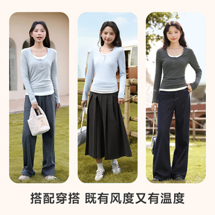 T恤女2025新款 内搭上衣打底衫 秋冬季 正肩百搭修身 韩版 班尼路长袖