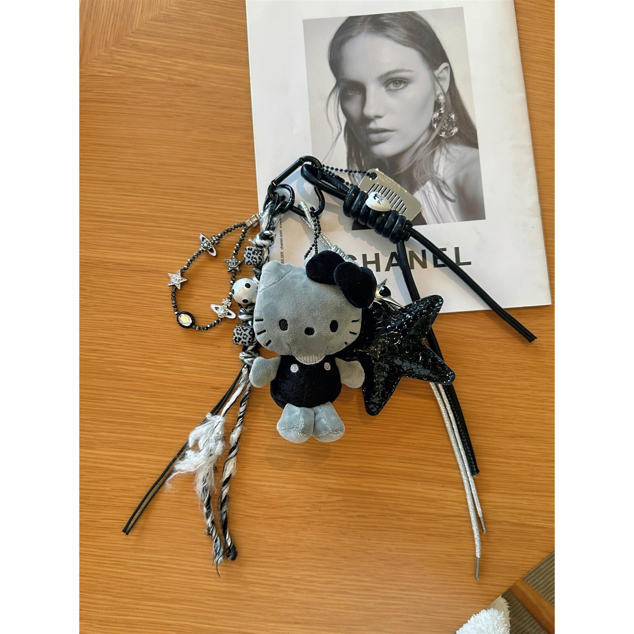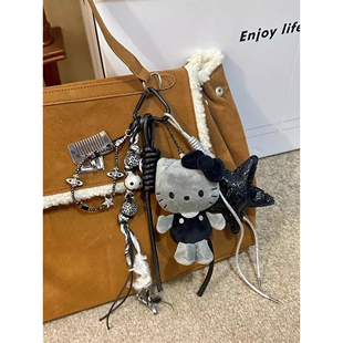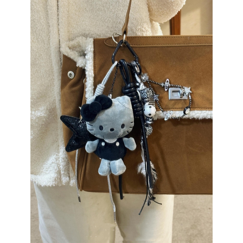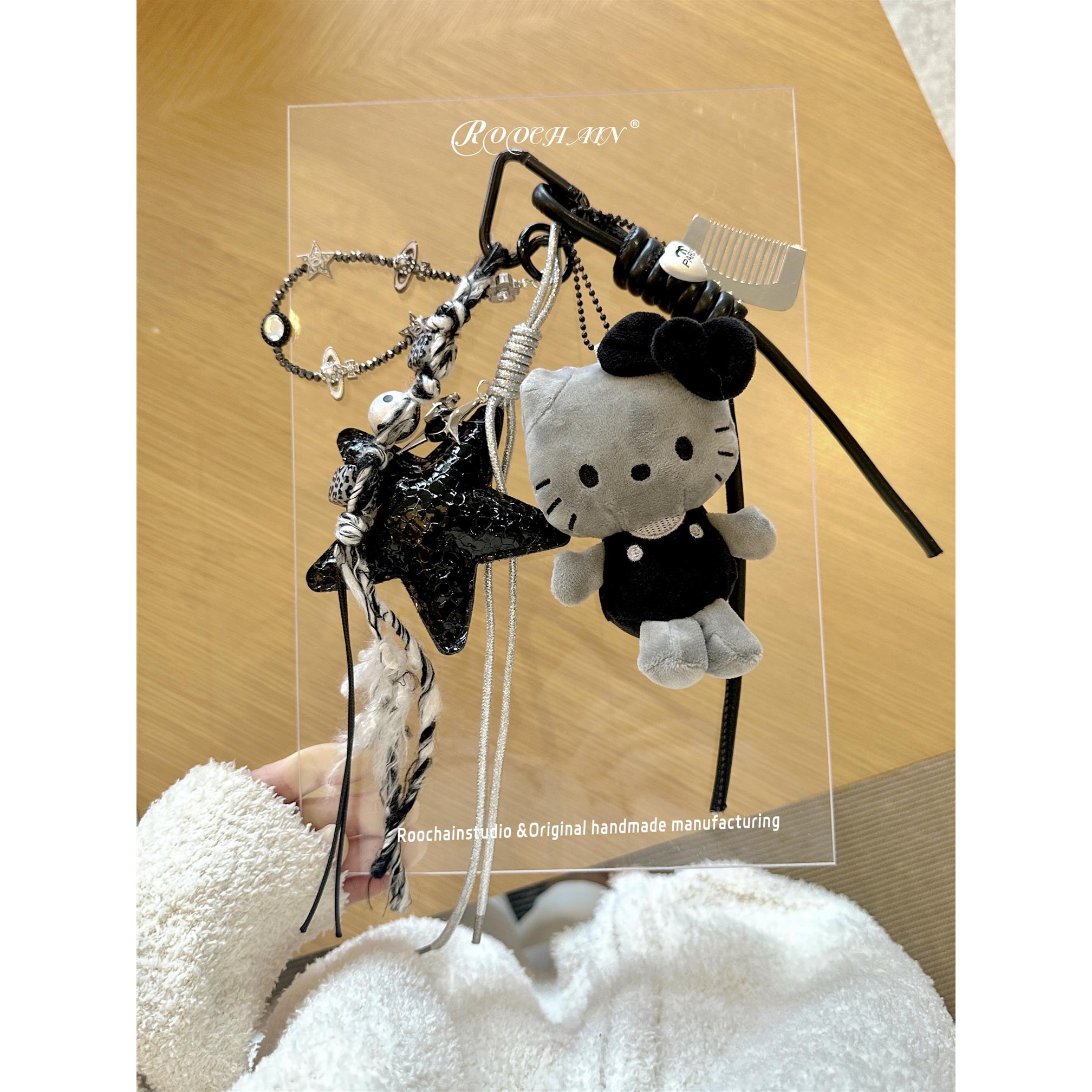 日本代购 哈喽kitty黑色系可爱立体星星KT公仔包包挂件钥匙扣 正版