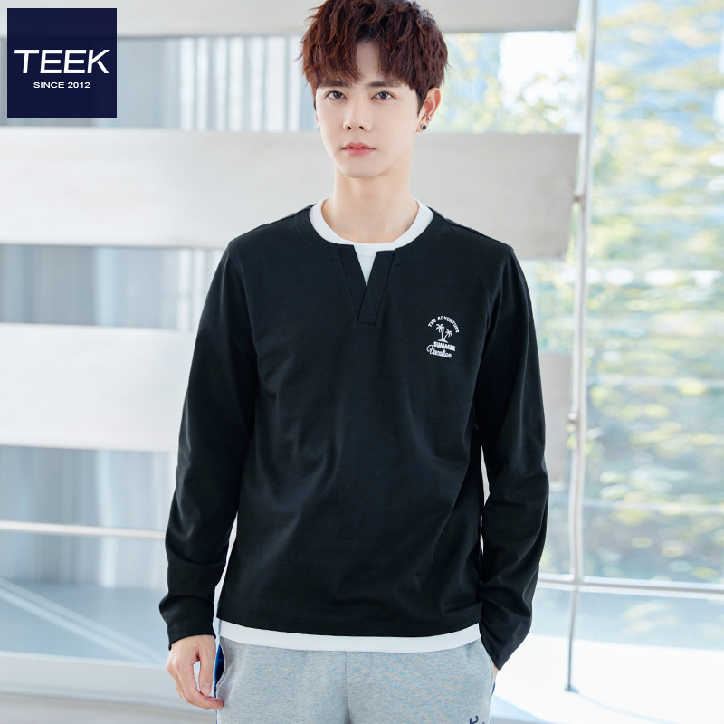 新款 小象汉姆童装 2025秋装 T恤假两件儿童纯棉打底衫 上衣 男童长袖
