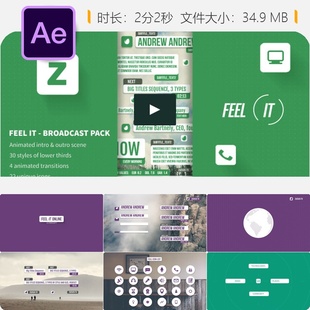 Feel AE模板图标下三分之一开场转场动画特效 IT互联网广播包装