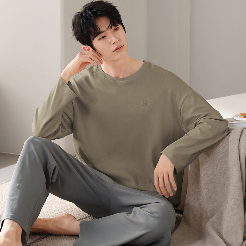 家居服套装 全棉100%纯棉睡衣男士 圆领可外穿男士 长袖 春秋2025新款