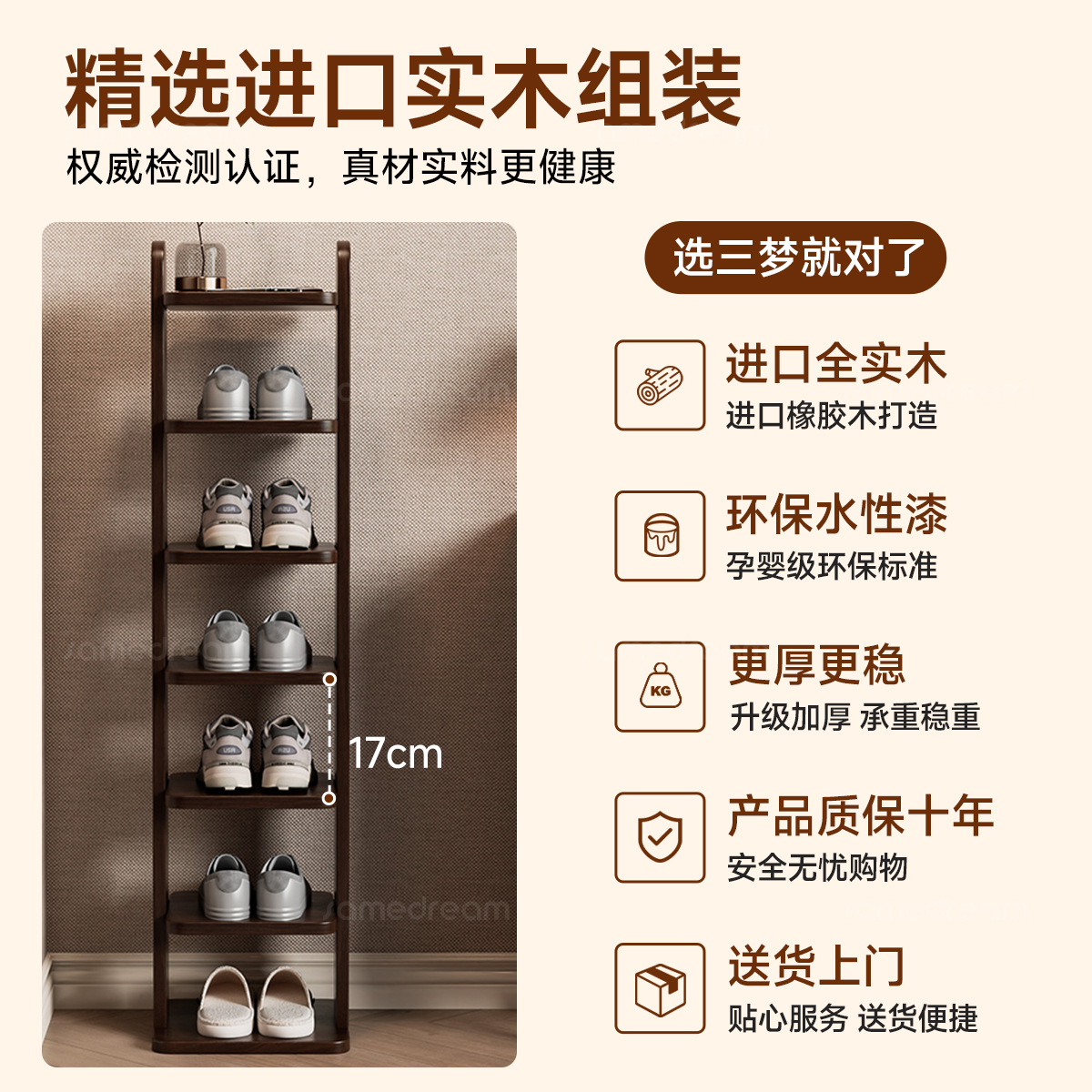 三梦实木鞋 柜室内玄关置物架 架子简易多层家用入户门口小窄收纳鞋