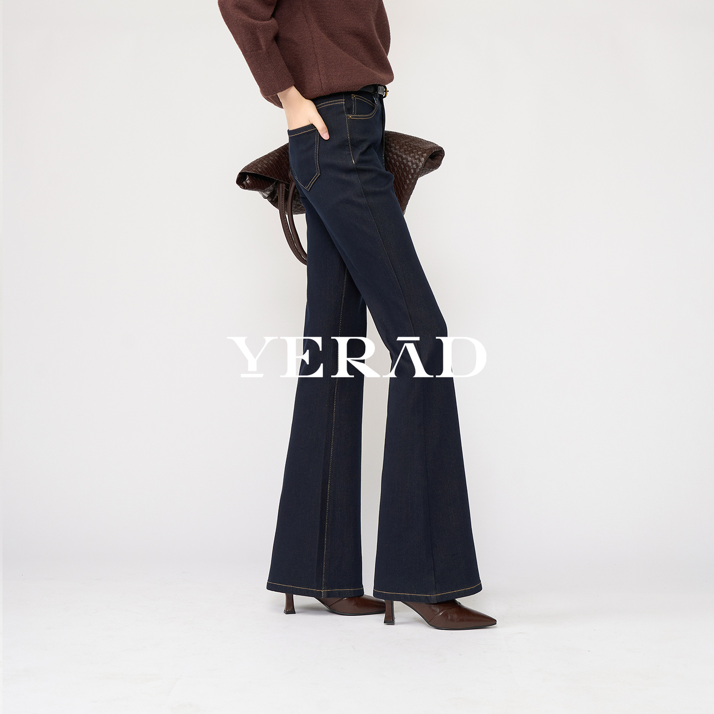高弹力喇叭女裤 娅丽达加绒微喇牛仔裤 新款 子2025冬季 女锁色裤