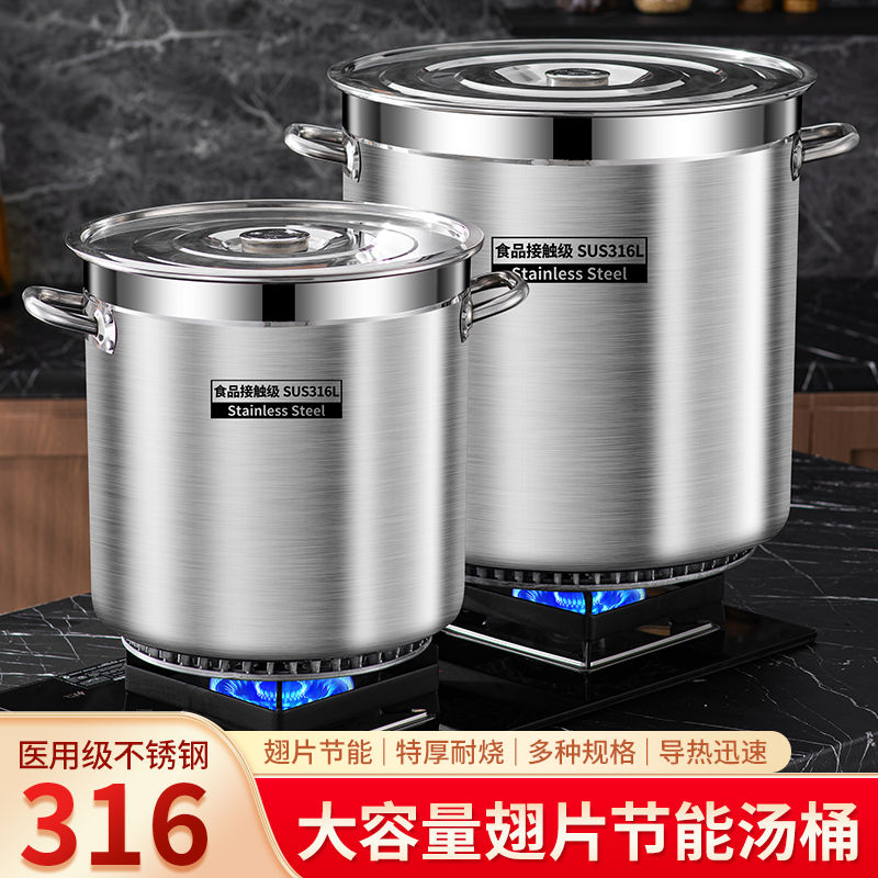 304翅片桶商用燃气节能汤锅不锈钢加厚汤桶带盖大容量卤肉桶圆桶