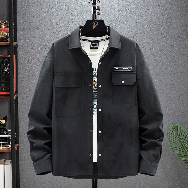 夹克多口袋衬衫 hansca美式 宽松翻领工装 新款 男 牛仔外套男2025秋季