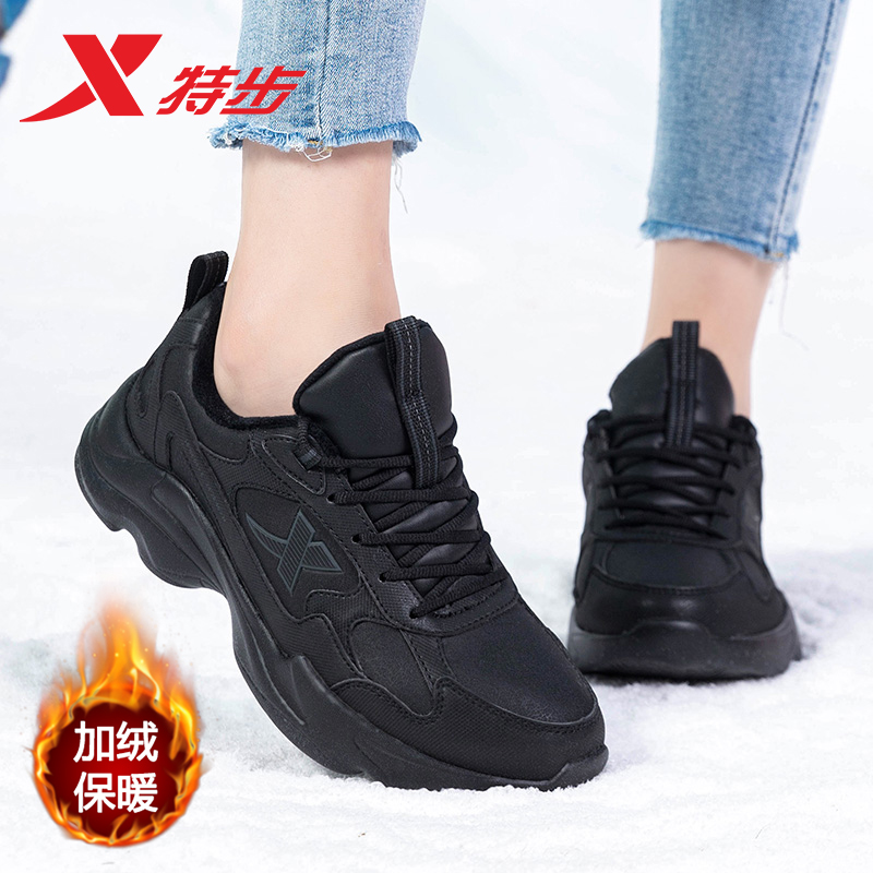男鞋 子软弹平底鞋 厚底增高情侣休闲鞋 女鞋 革面 运动鞋 特步秋冬板鞋