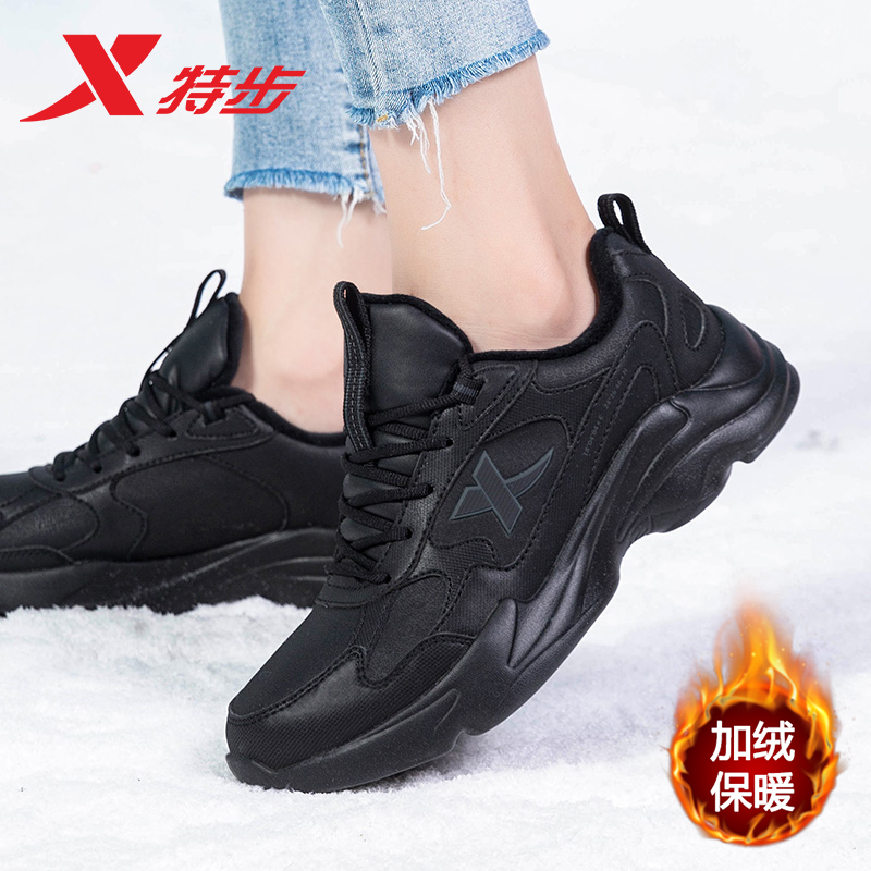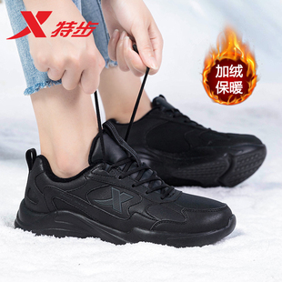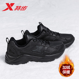 皮面防泼水爸爸减震网面休闲鞋 特步跑步鞋 黑色运动鞋 秋冬新款 男鞋