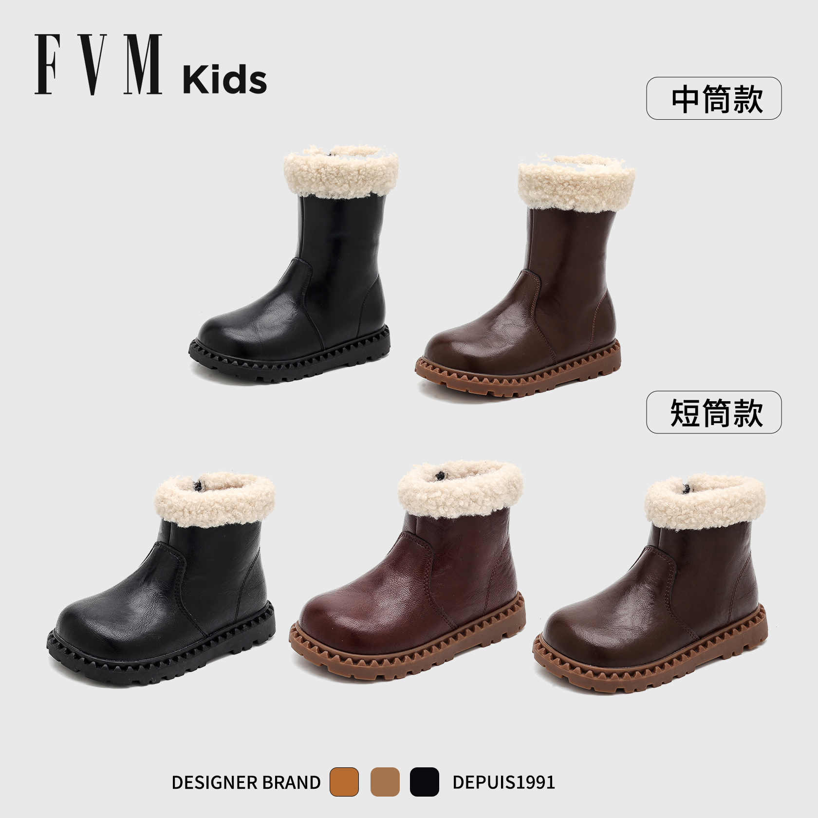巴布豆真皮马丁靴女童靴子儿童短靴2025秋冬新款 加绒百搭大棉靴潮