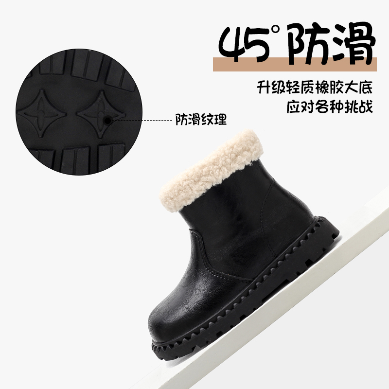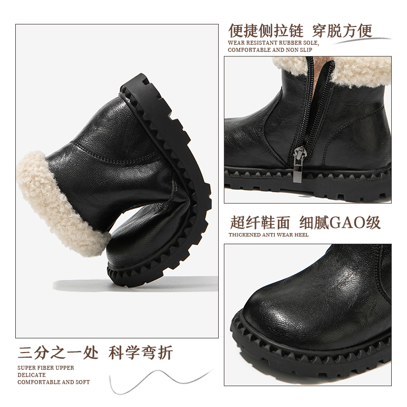 贝然童靴真皮皮鞋 女童马丁靴短靴中筒靴男童单靴皮靴女宝加绒棉靴
