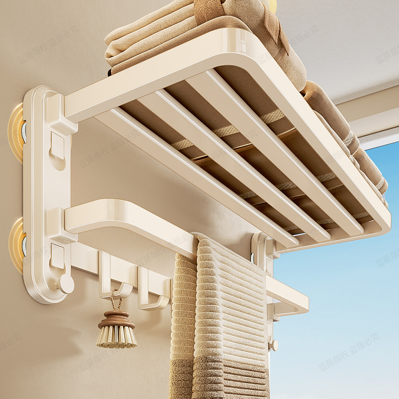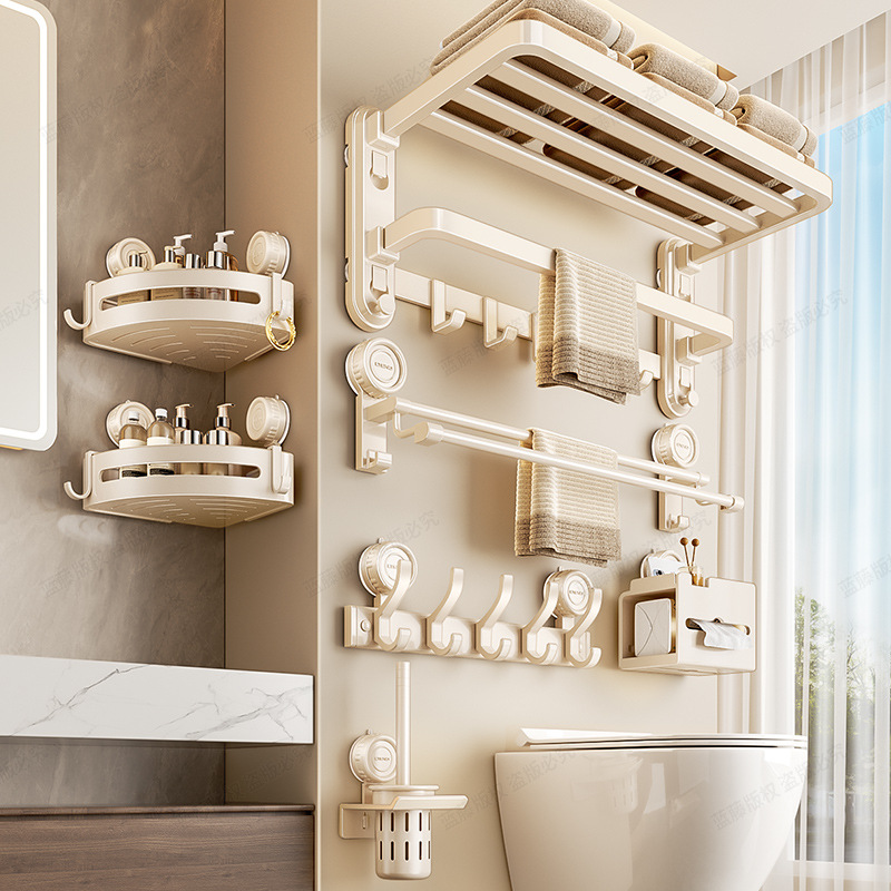 奶白吸盘款 毛巾收纳架卫生间免打孔浴室置物架浴巾架 厕所挂件套装