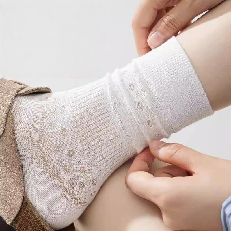 袜子女士纯棉白色中筒袜秋季 加厚泡泡袜女无骨月子袜秋天配勃肯鞋