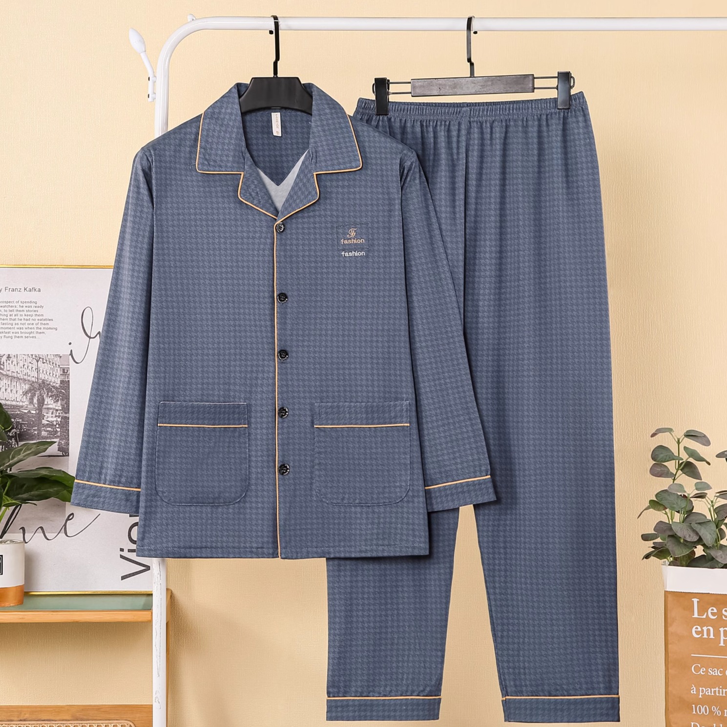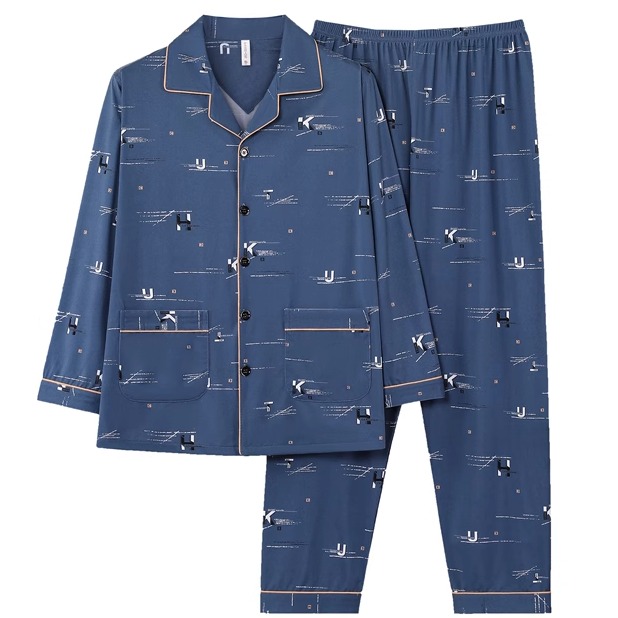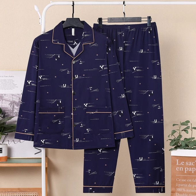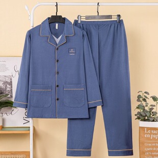 新款 家居服时尚 薄款 男士 春夏长袖 中老年爸爸睡衣男春秋2025秋冬季