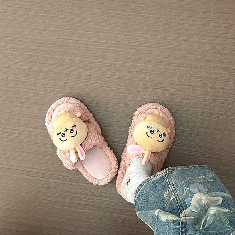 新款 女外穿2024年秋冬轻便简约踩屎感休闲一 卡通可爱小人毛毛鞋