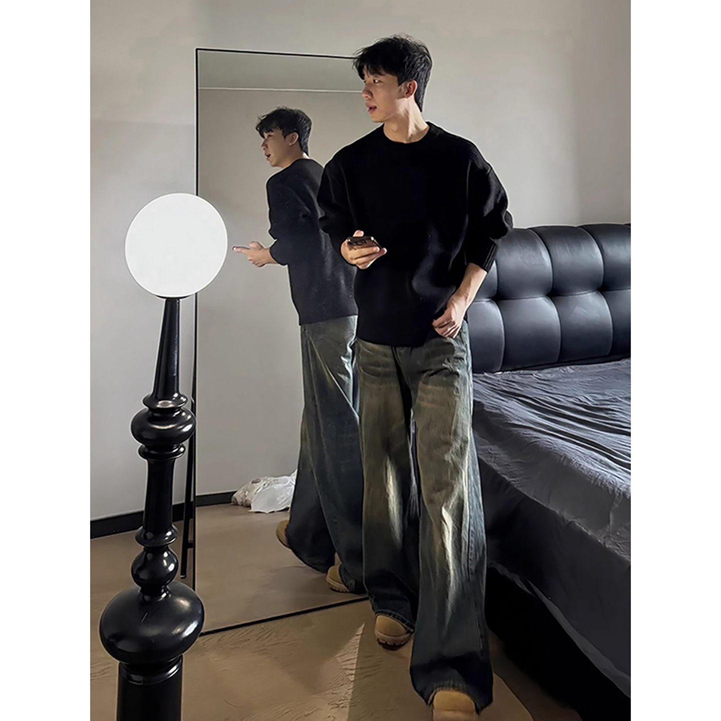海澜之家休闲长袖 圆领套头时尚 针织衫 新款 蓬松毛衣男 2025秋季 HLA