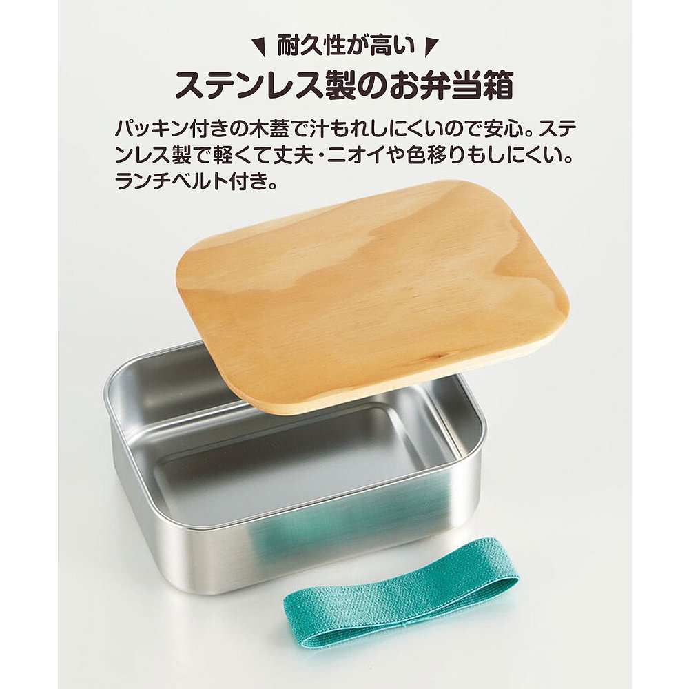 日本直邮不锈钢饭盒容量1030毫升单层配有木质盖子垫圈和腰带 容