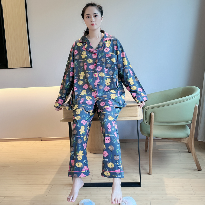 胖m200斤宽松全棉卡通家居服套装 纯棉加肥加大码 睡衣女春秋季 大码