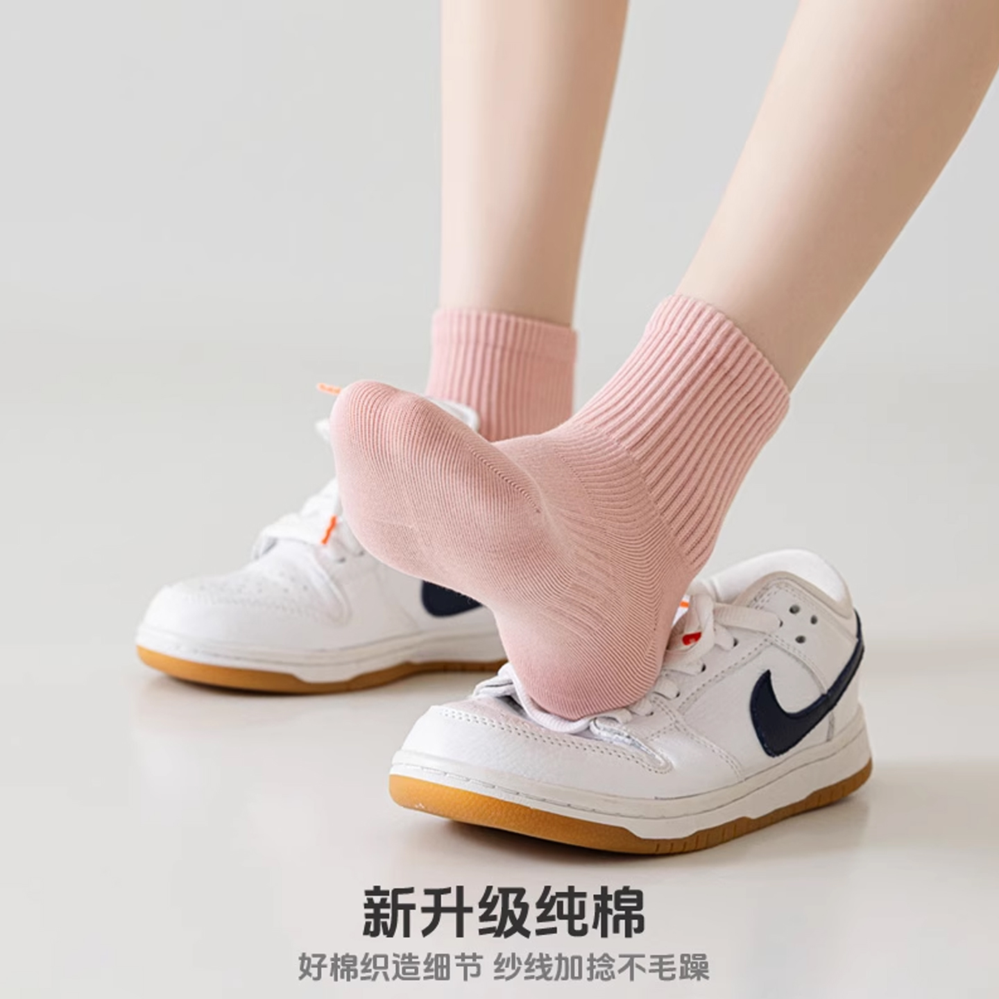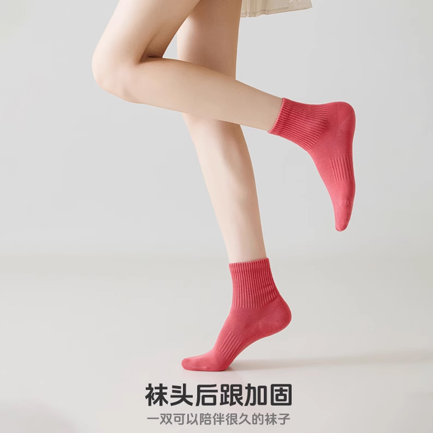 女士短袜秋冬纯棉抑菌防臭吸汗透气休闲运动百搭时尚 通勤中筒袜子