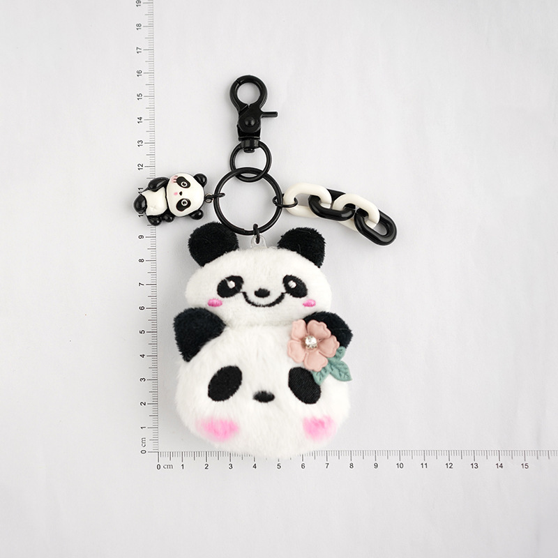熊猫花朵毛绒公仔情侣车钥匙扣饰品可爱背包礼物链挂件书包玩偶