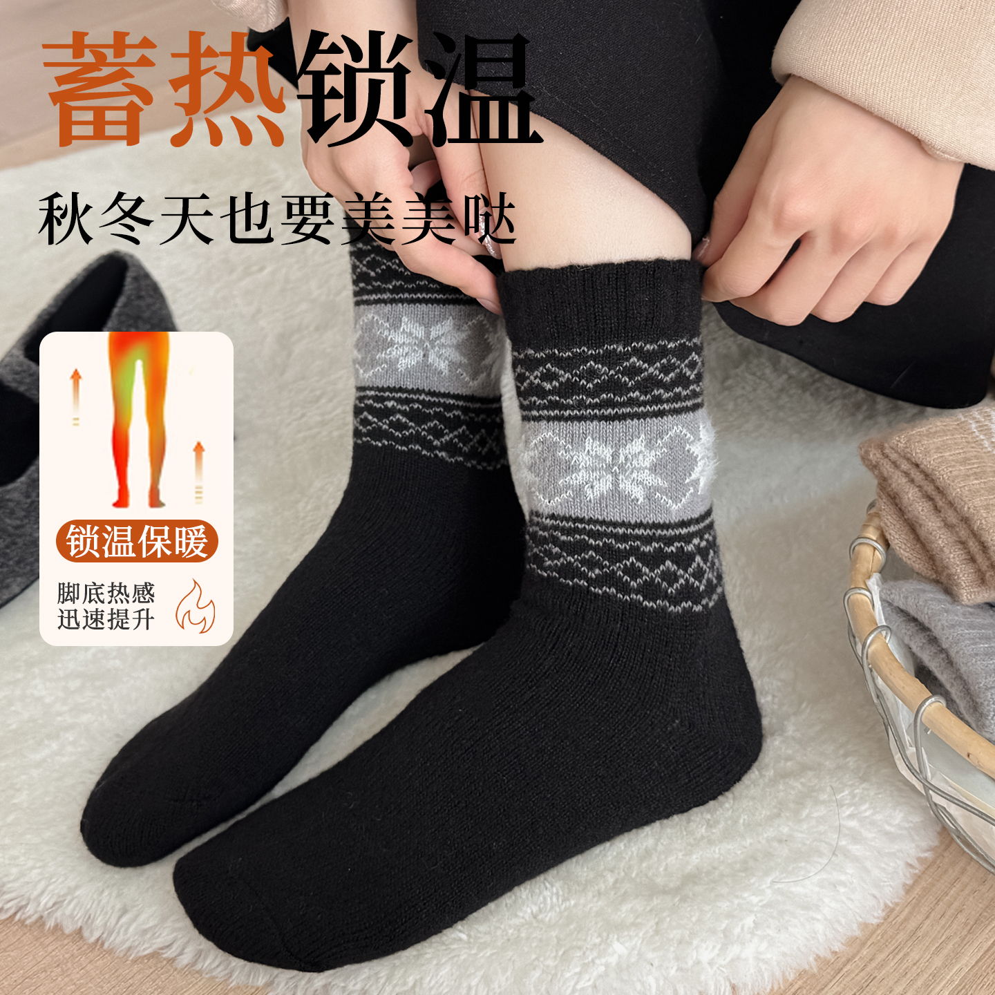 堆堆袜子女款 配靴子白色中筒袜羊毛无骨小腿袜套保暖长筒袜 秋冬季