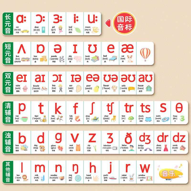 音标有声挂图英语发音和自然拼读发音48个国际英文字母表学习神器