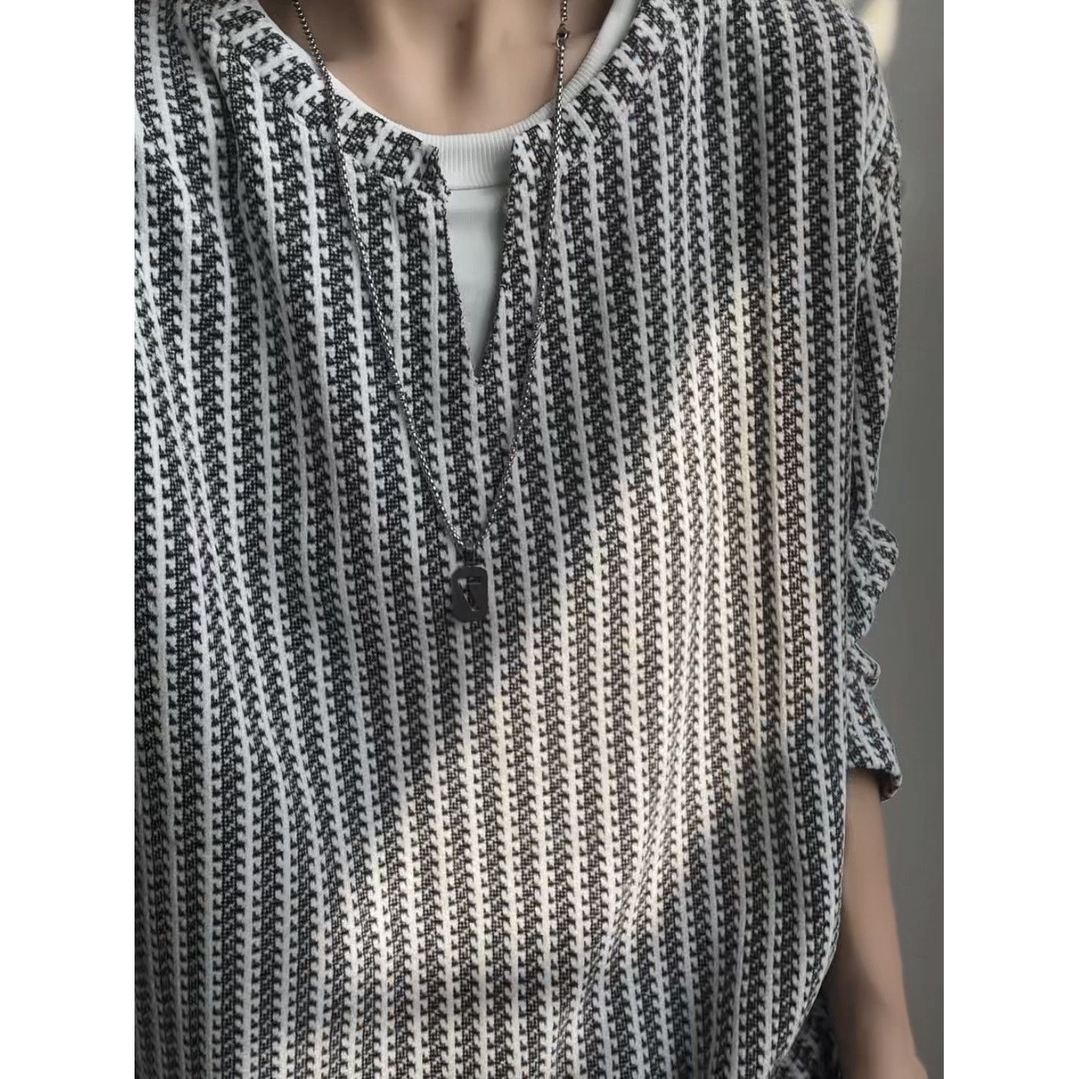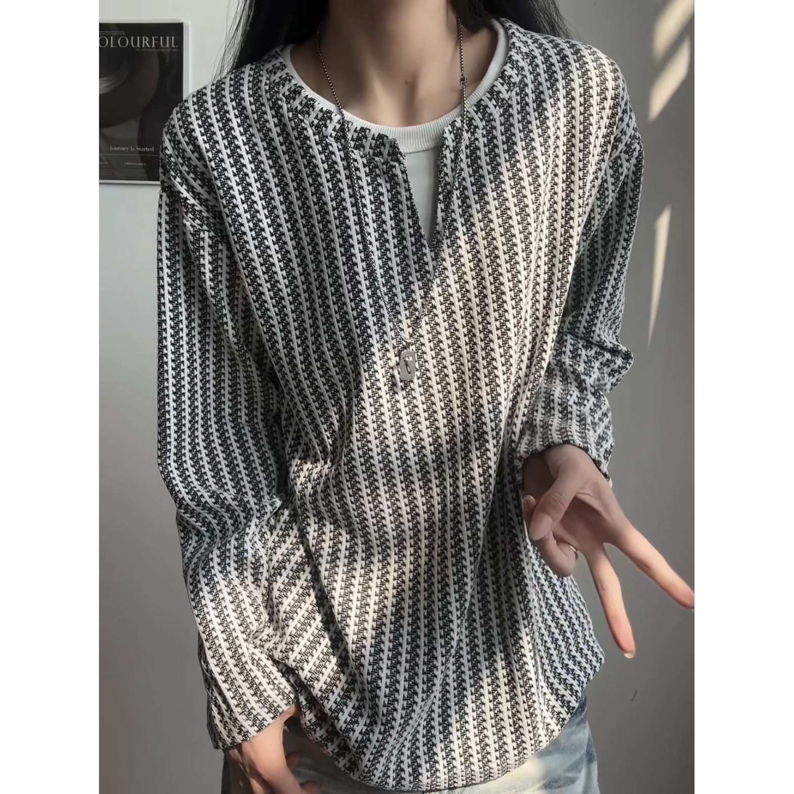 复古重磅卫衣V领小香风内搭打底衫 美式 t恤男秋季 鱼骨纹假两件长袖