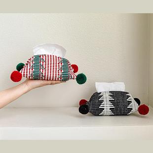 卧室餐桌纸巾套纸巾盒 纸巾袋民宿挂式 新年北欧法式 布艺编织车载款