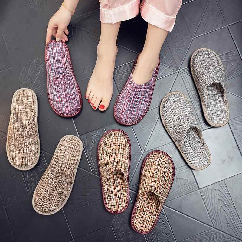 秋布艺家居家用凉拖鞋 布1008e 室内情侣防滑女静音透气软底四季