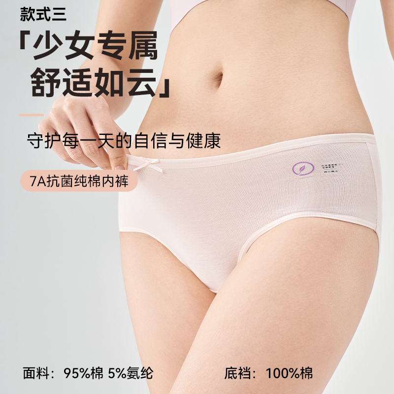 女士纯棉中腰女生内裤 不夹臀抗菌内裤 三角裤 新款 短裤 全棉时代内裤