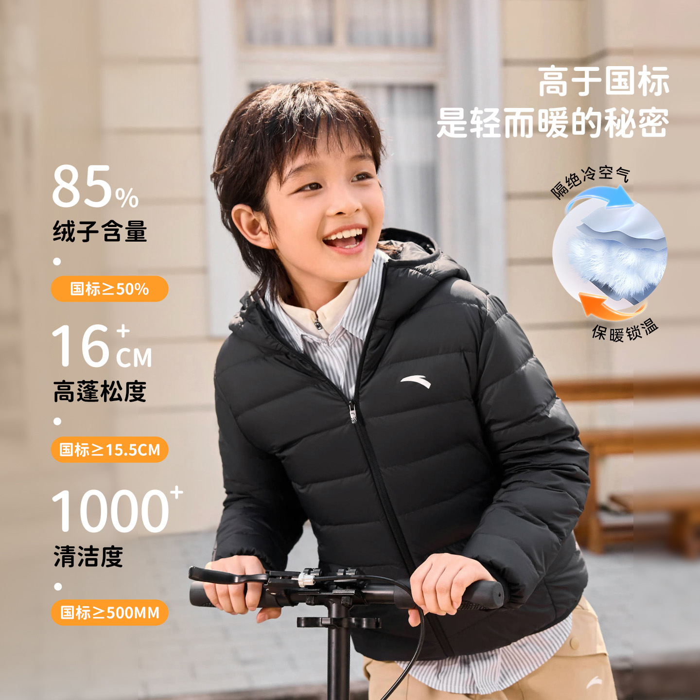 安踏儿童男童女童羽绒服2025冬季 保暖防风男孩女孩轻薄羽绒服 新款