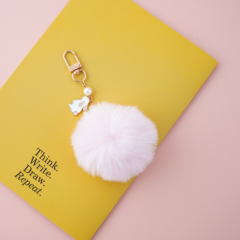 ins情侣可爱月亮兔子毛球美少女挂件钥匙扣书包挂饰Airpods挂件