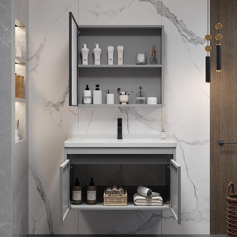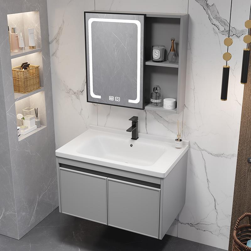 45太空铝极窄40cm宽35洗漱台陶瓷一体盆浴室柜洗手盆柜简约洗脸盆