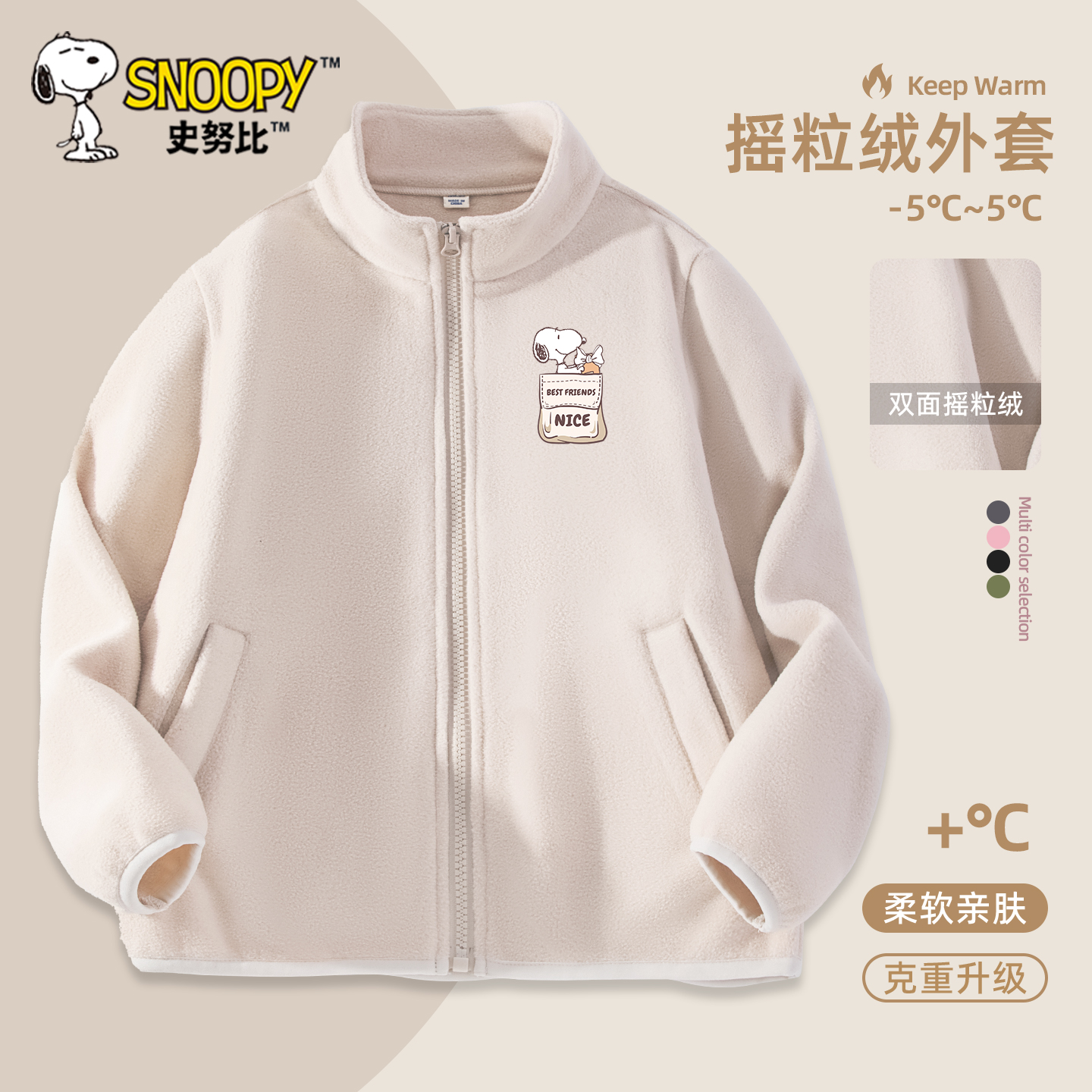 史努比男童摇粒绒外套2025新款 儿童加绒上衣冬 男大童黑色立领开衫