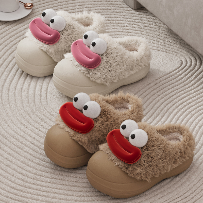 月子室内家居家防滑厚底踩屎感毛毛绒保暖情侣男士 棉拖鞋 女秋冬季