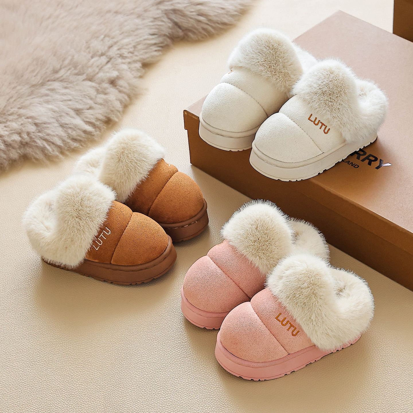 可爱亲子宝宝毛绒保暖居家女孩拖鞋 2025新款 女童秋冬季 儿童棉拖鞋