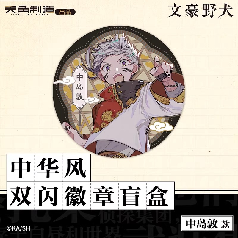 官方授权周边谷子 文豪野犬中华风双闪徽章盲盒吧唧 官谷