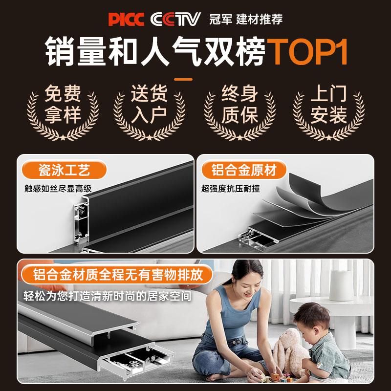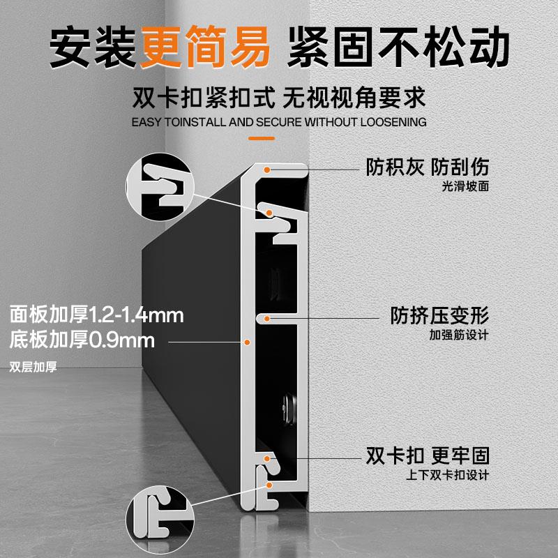 踢脚线铝合金上门安装 饰遮丑套餐极简超薄黑色4cm地脚线 家用装