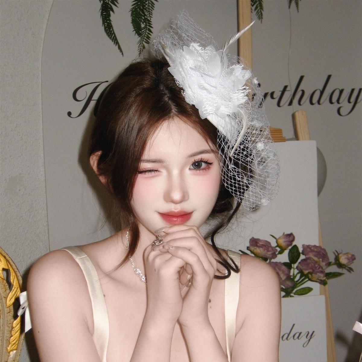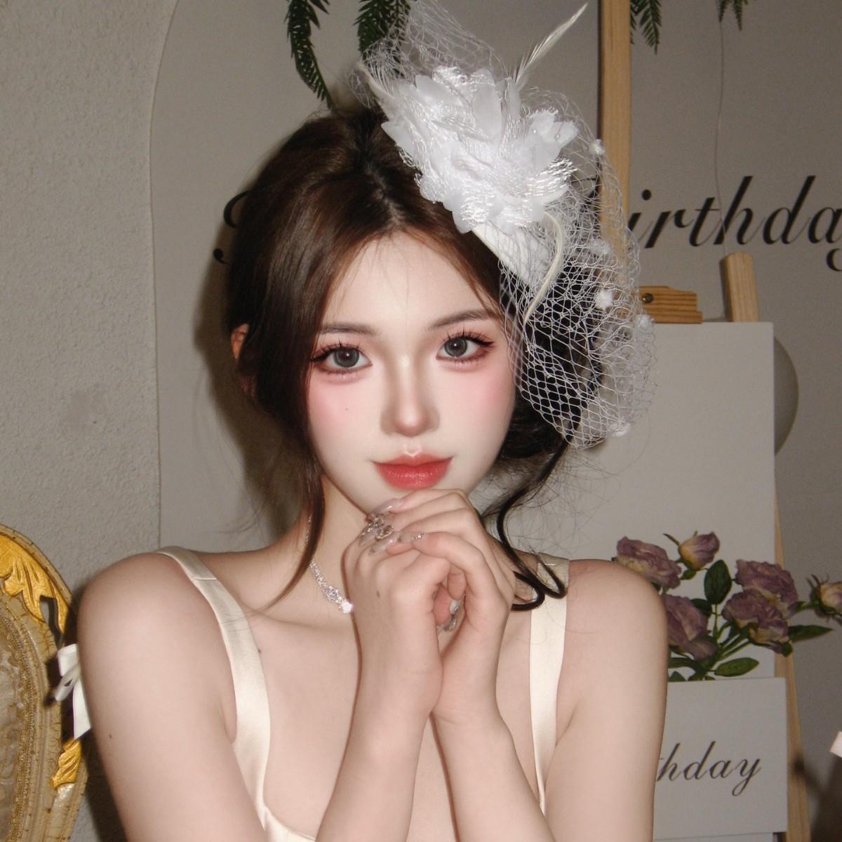 白色头纱头饰领证求婚拍照道具新娘结婚订婚登记主婚纱女蓬蓬小短