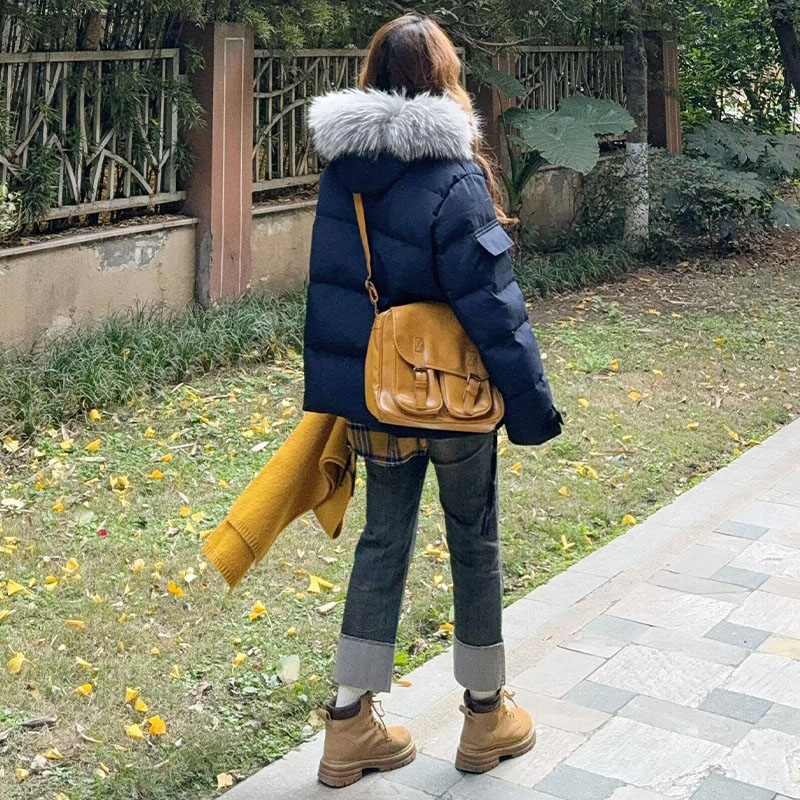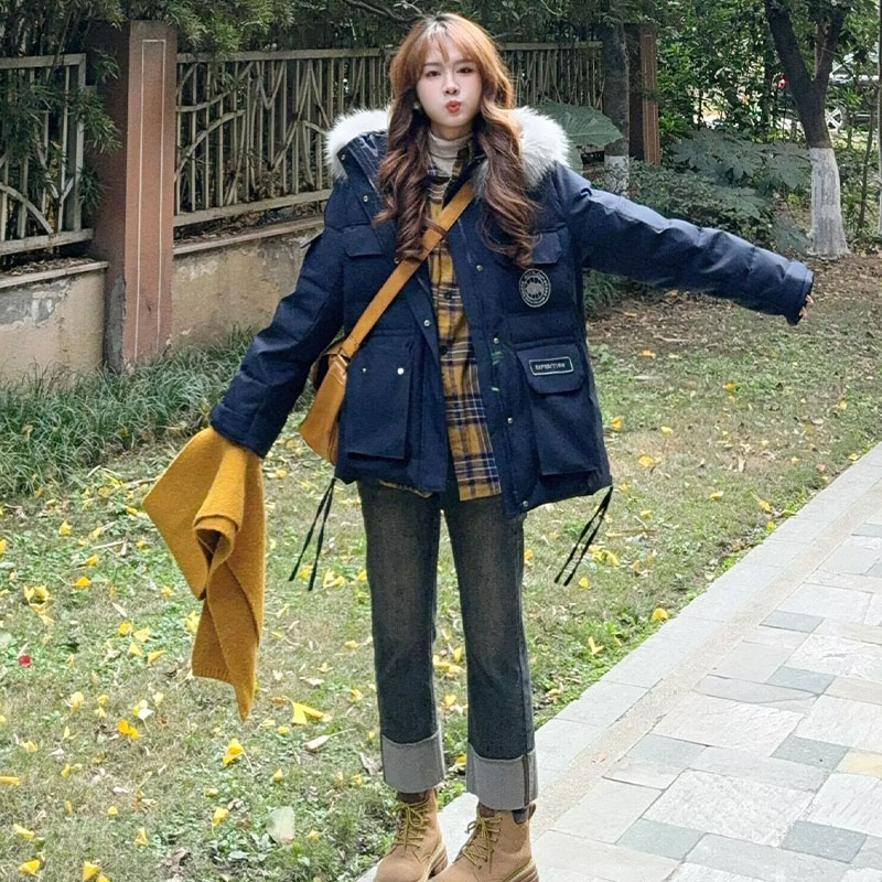 外套 2025年巨好看超火加厚工装 美式 复古大毛领派克羽绒棉袄女冬季