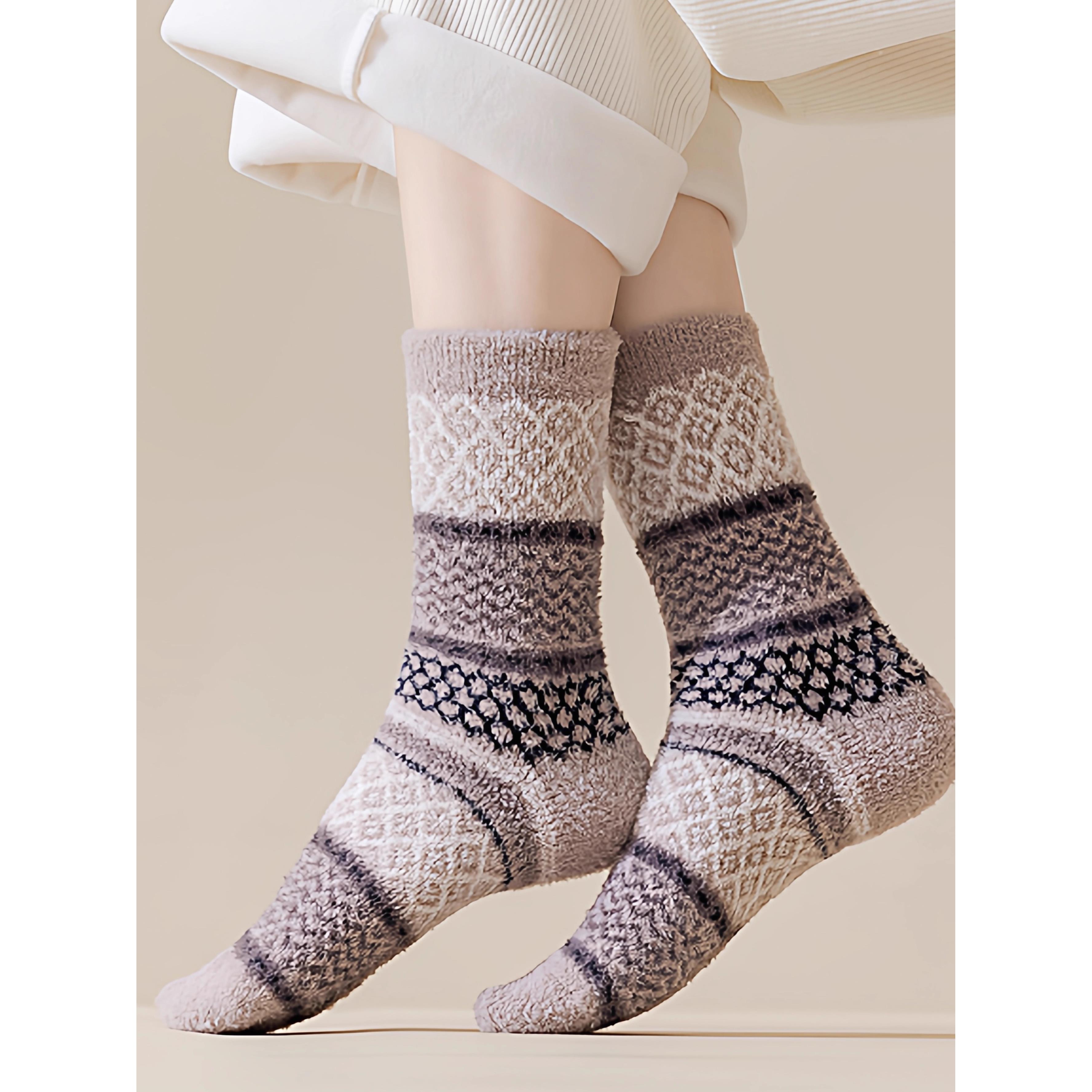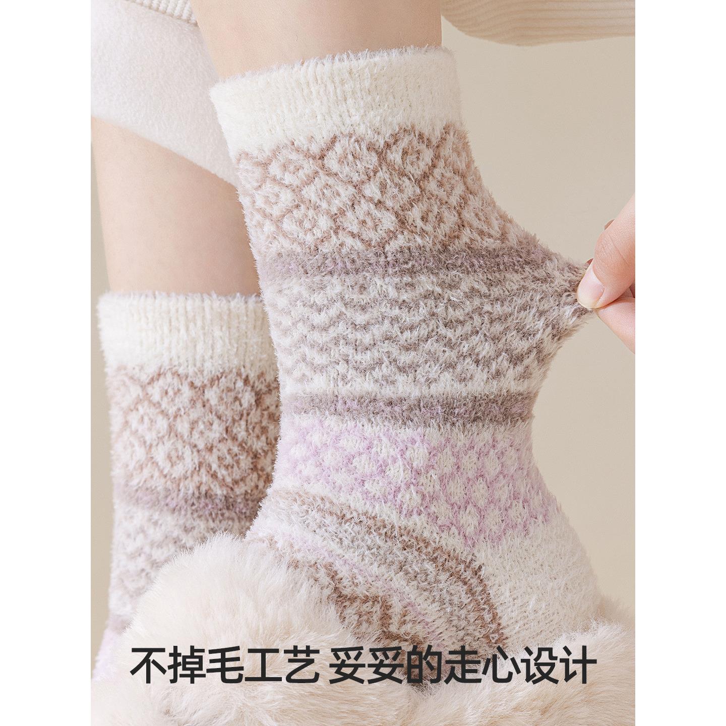 民族风袜子女秋冬复古中筒袜加绒加厚保暖防寒月子袜半边绒堆堆袜