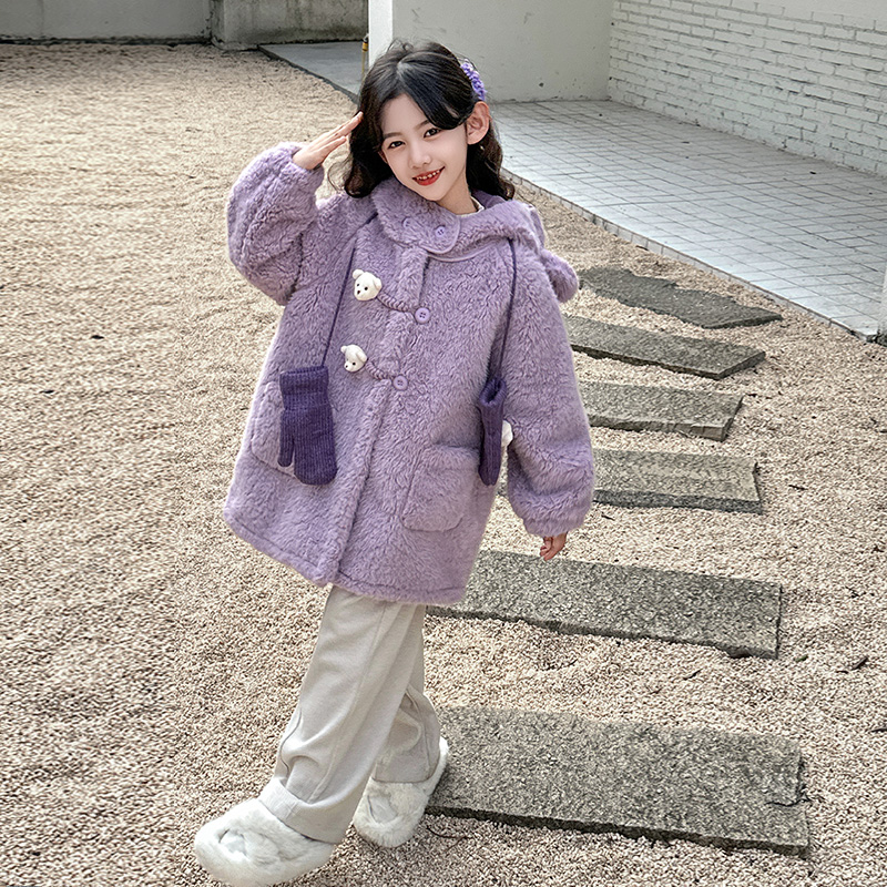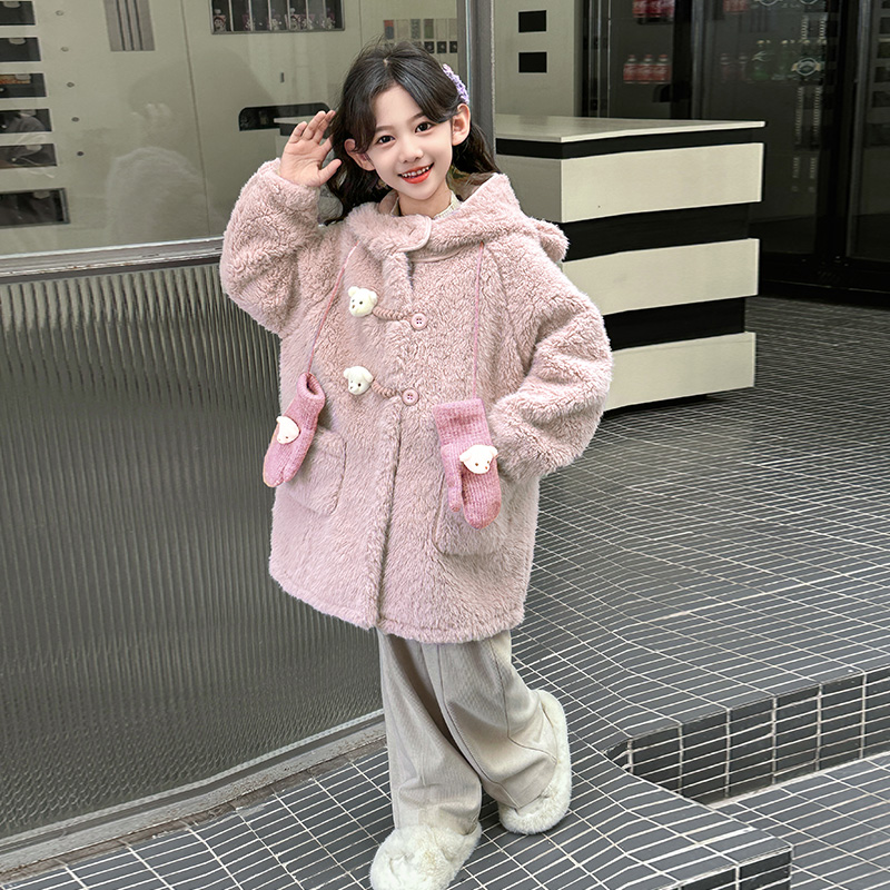 女孩连帽毛毛衣洋气 儿童加厚上衣韩版 女童加绒外套秋冬装 新款
