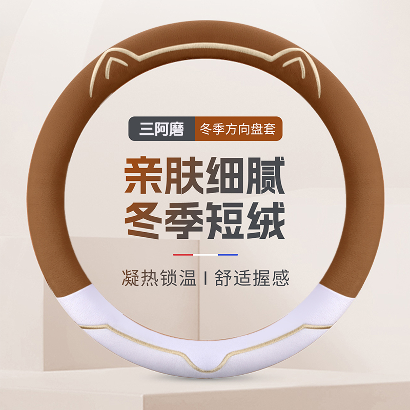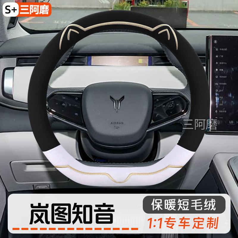 2025款 保暖短毛绒可爱金边猫耳朵汽车把套女 岚图知音方向盘套冬季
