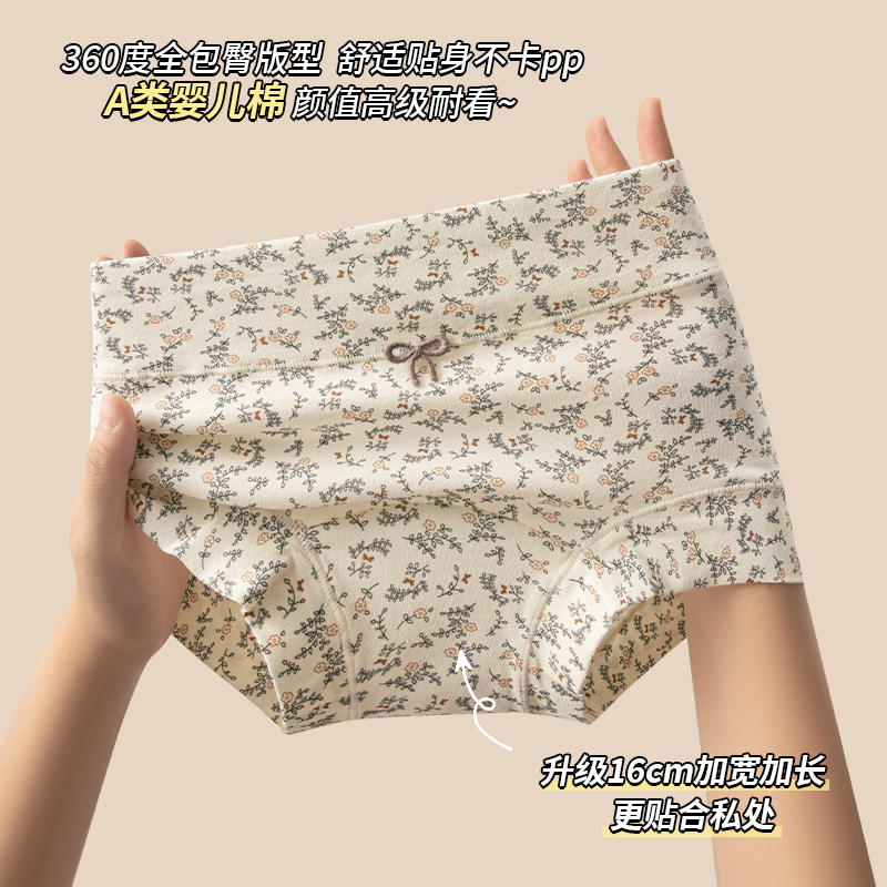 少女短裤 平角裤 100%全棉抗菌裆舒适中高腰大码 有棵树纯棉女士内裤