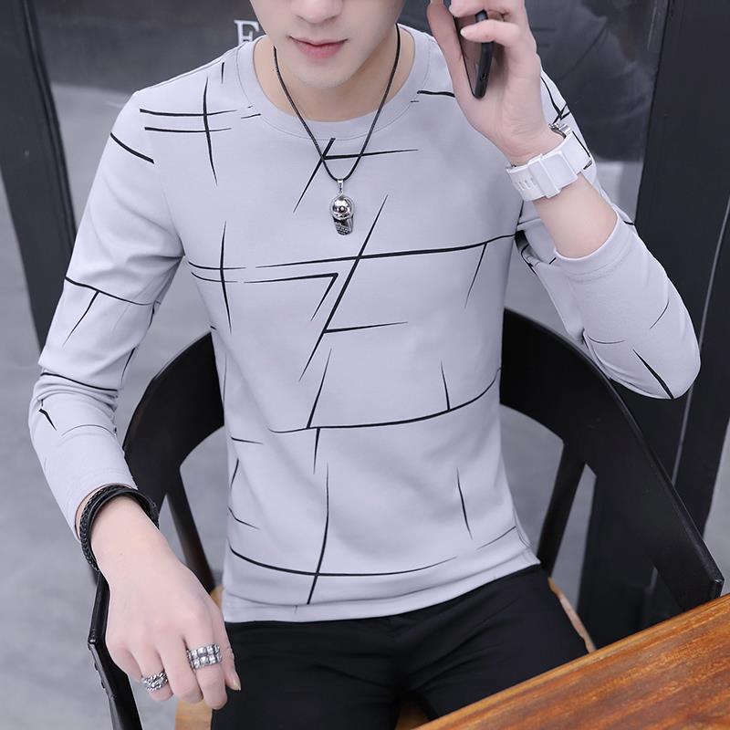 XAKA重磅小领口纯色长袖 上衣 t恤男秋2024卫衣纯棉圆领宽松打底衫