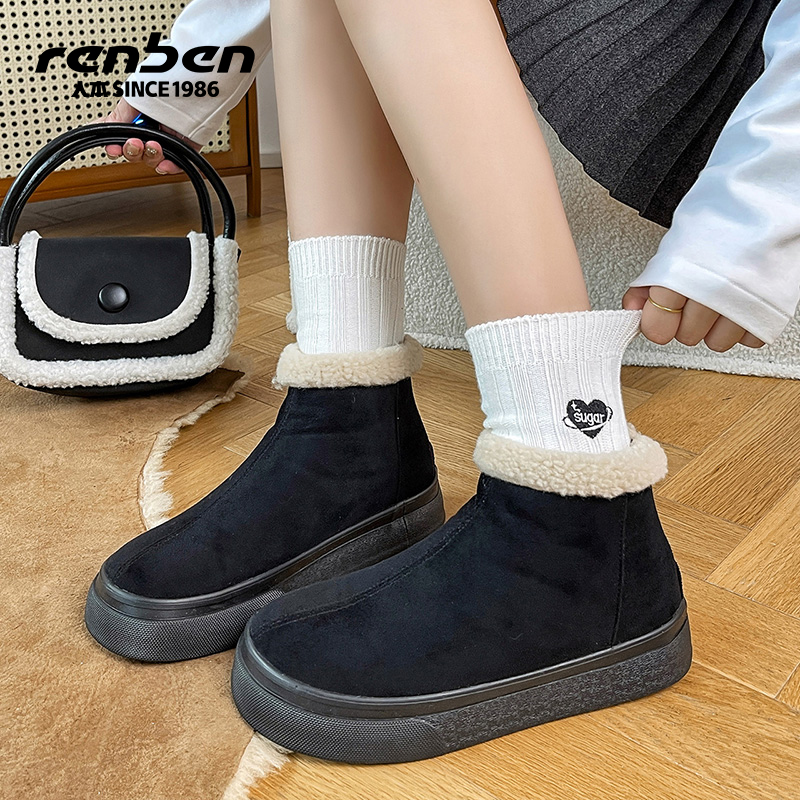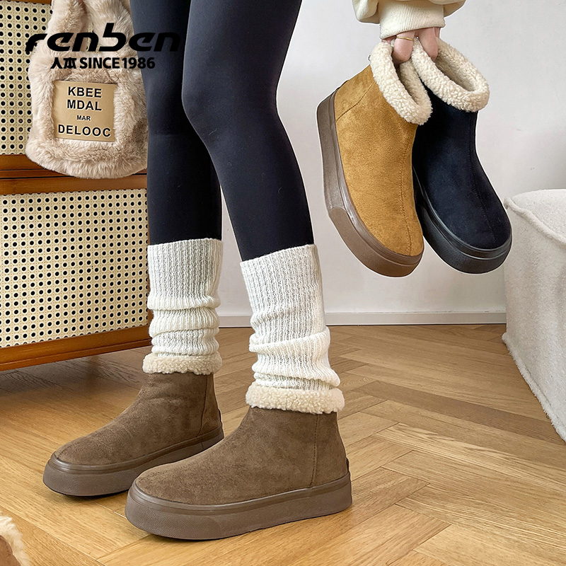 加绒加厚短筒防水防滑保暖户外棉鞋 人本厚底雪地靴女2025新款 冬季